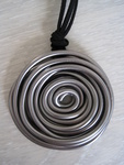 2010antraciet kleurige hanger van 4mm alluminiumdraad, doosnede 7 cm, aan zwarte leder look lang koord