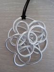 2010Hanger van 3mm alluminiumdraad, doosnede 6 cm, aan lederen koord